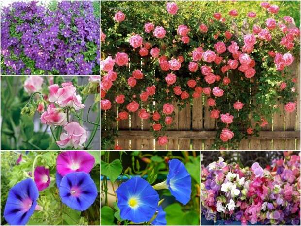 На зиму побеги нужно обрезать (способ обрезки клематисов, зависит от их группы обрезки) и укрывать. Плетистые розы Замечательно обвивают арки, особенно красивы мелкие розочки. Цветут обильно. Плетистые розы вьются только, если вы им будете помогать, их нужно направлять. Это многолетники, которые на зиму нужно обрезать и укрывать. Душистый горошек Однолетнее растение, которое прекрасно украшает беседки, перголы и заборы. Вдоль заборов растет замечательно. Вырастает до 2,5 м. Цветет с июля по сентябрь.Его можно выращивать и на балконе. Ипомея Это вьющееся однолетнее растение для дачи, которое растет достаточно. Вырастает до 3 — 4 м.Эта лиана неприхотлива, и легко вырастает около заборов и стенок. Закрывает любое некрасивое место быстро. Вьющиеся растения для сада обязательно требуют опоры, по которым побеги будут ползти наверх. Выбор опоры зависит от растения, разные цветы, цепляются разными частями при росте. Удачи на даче!